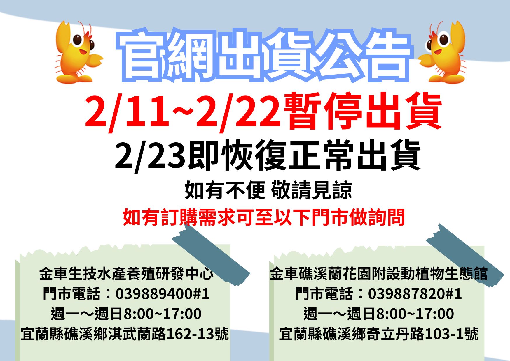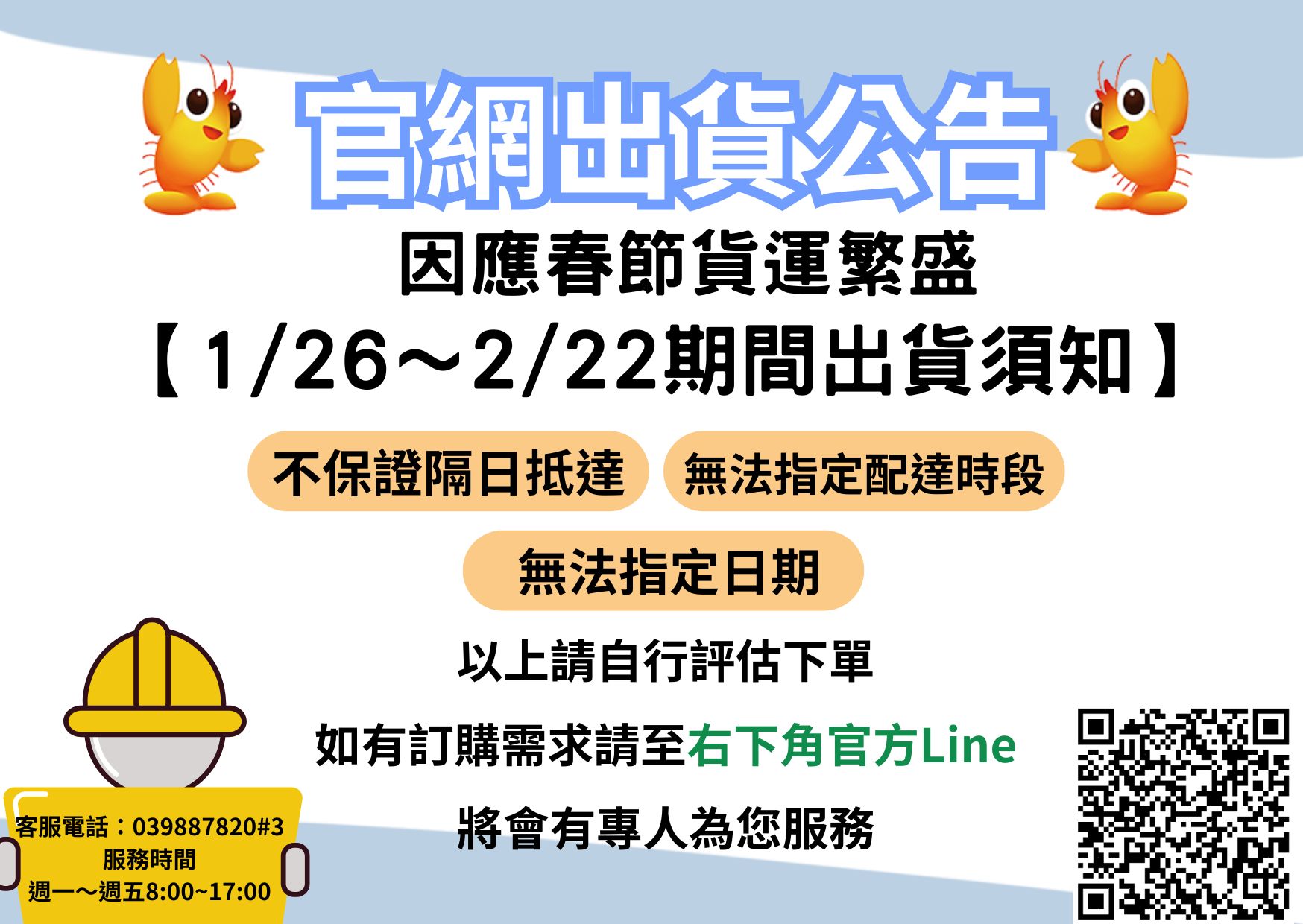 春節出貨公告